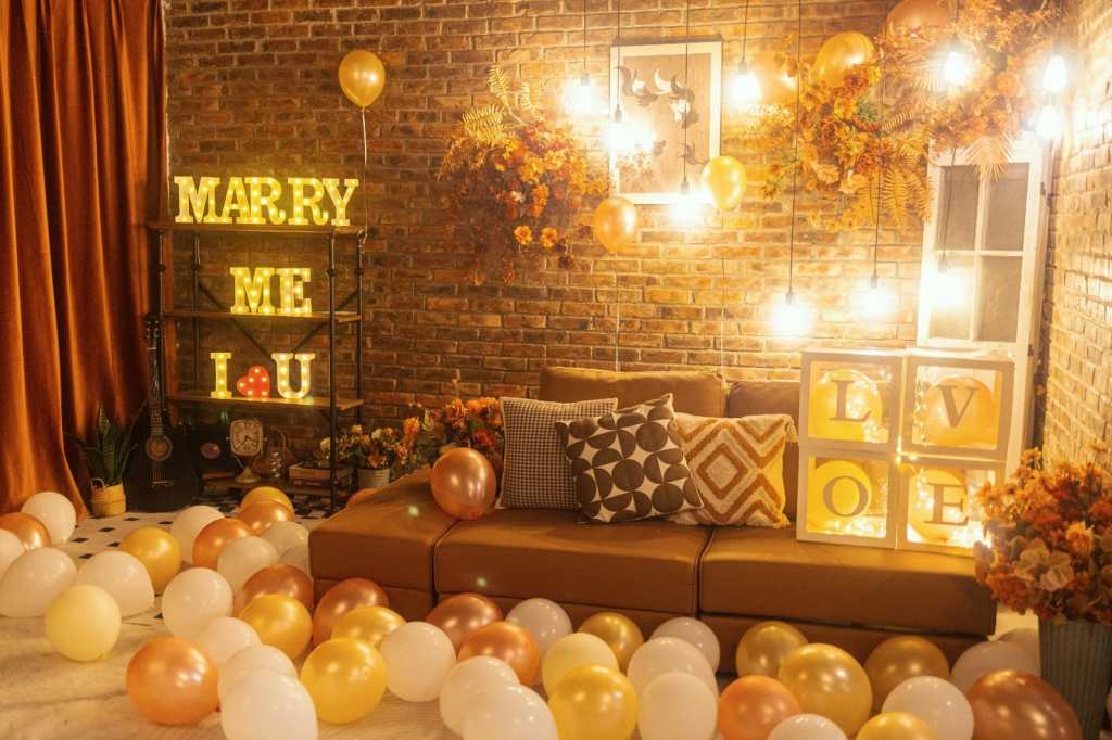 - 求婚佈置(氣球、紅玫瑰絲花、Marry me 燈牌)